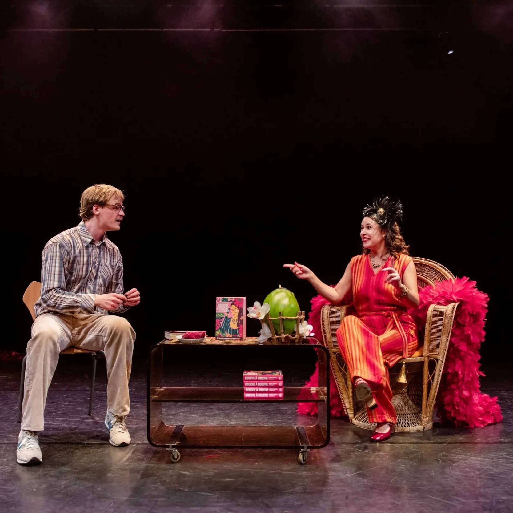 Il devra animer cette rencontre exceptionnelle en suivant la cadence imprévisible de son invitée. Confidences, rituels inattendus et surprises tropicales rythment cette comédie joyeusement décalée sur l’urgence de jouer, la magie du théâtre et la beauté de l’imperfection.